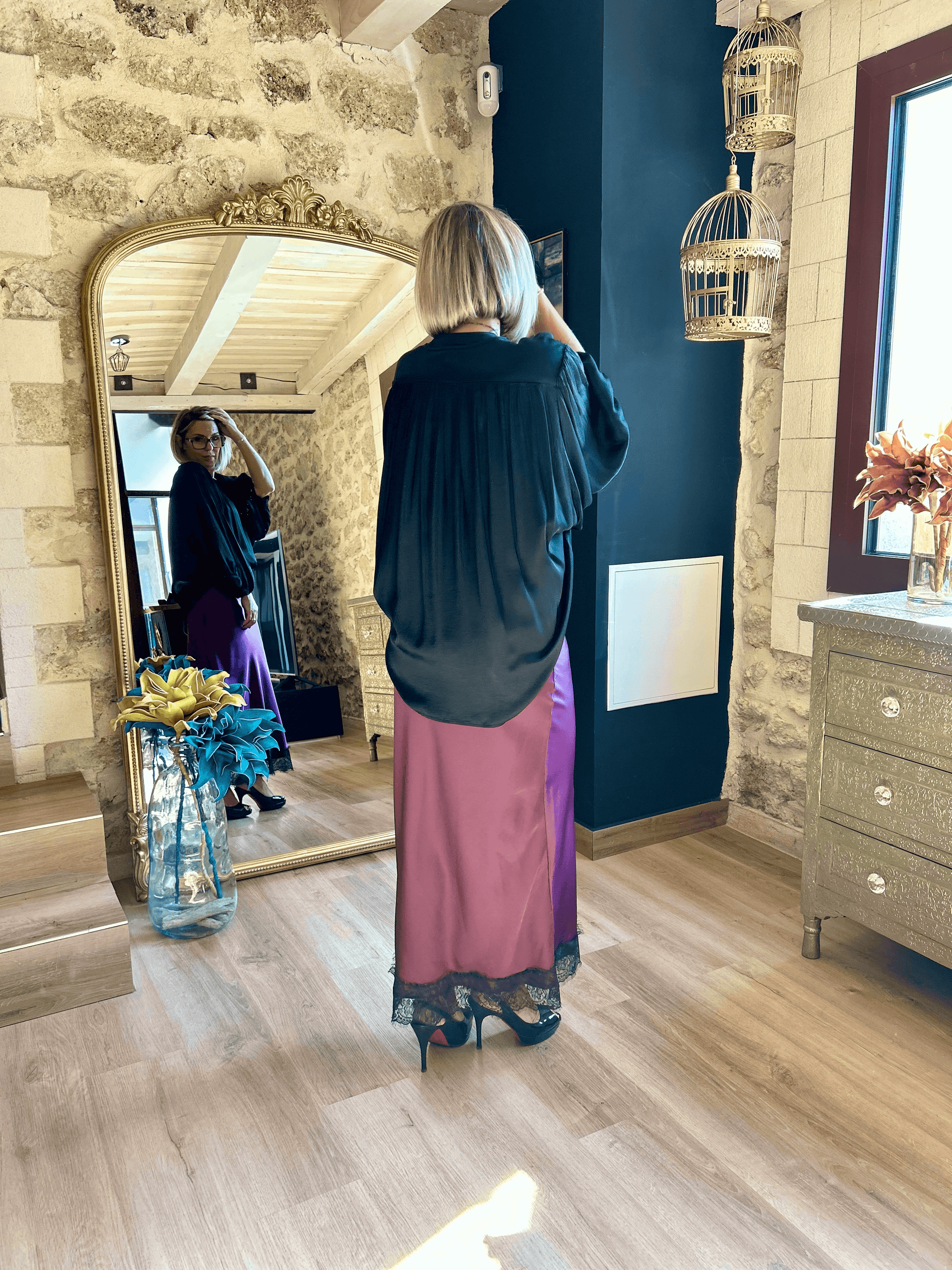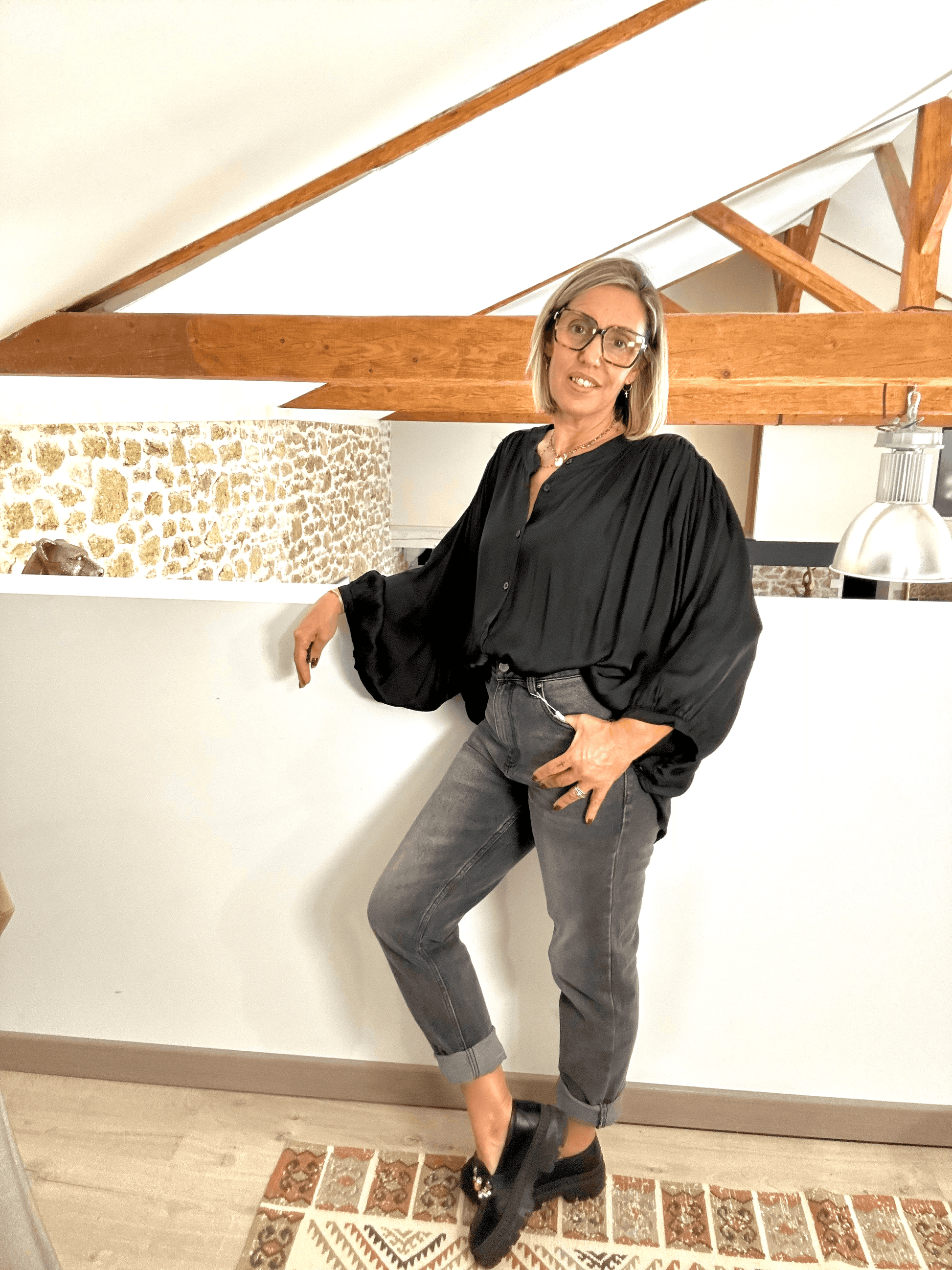 Le chemisier satiné Zoé flatte toutes les morphologies. Avec un Jean, une jupe ou un pantalon fluide, le chemisier Zoé devient ton allié style du matin au soir.