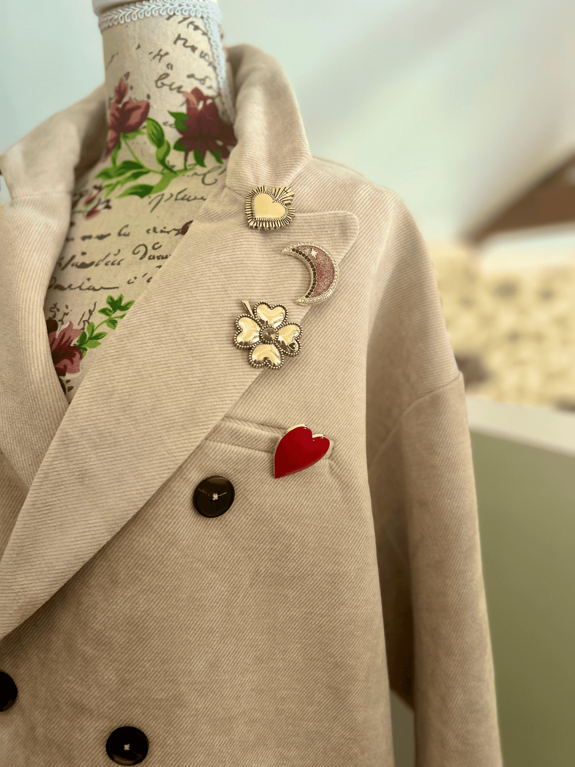 Nos clips se fixent en douceur, sans jamais marquer le tissus. Sur un col d'une chemise, au revers d'une veste, sur un chapeau, un bandeau ou même sur des chaussures pour une touche mode inattendue.